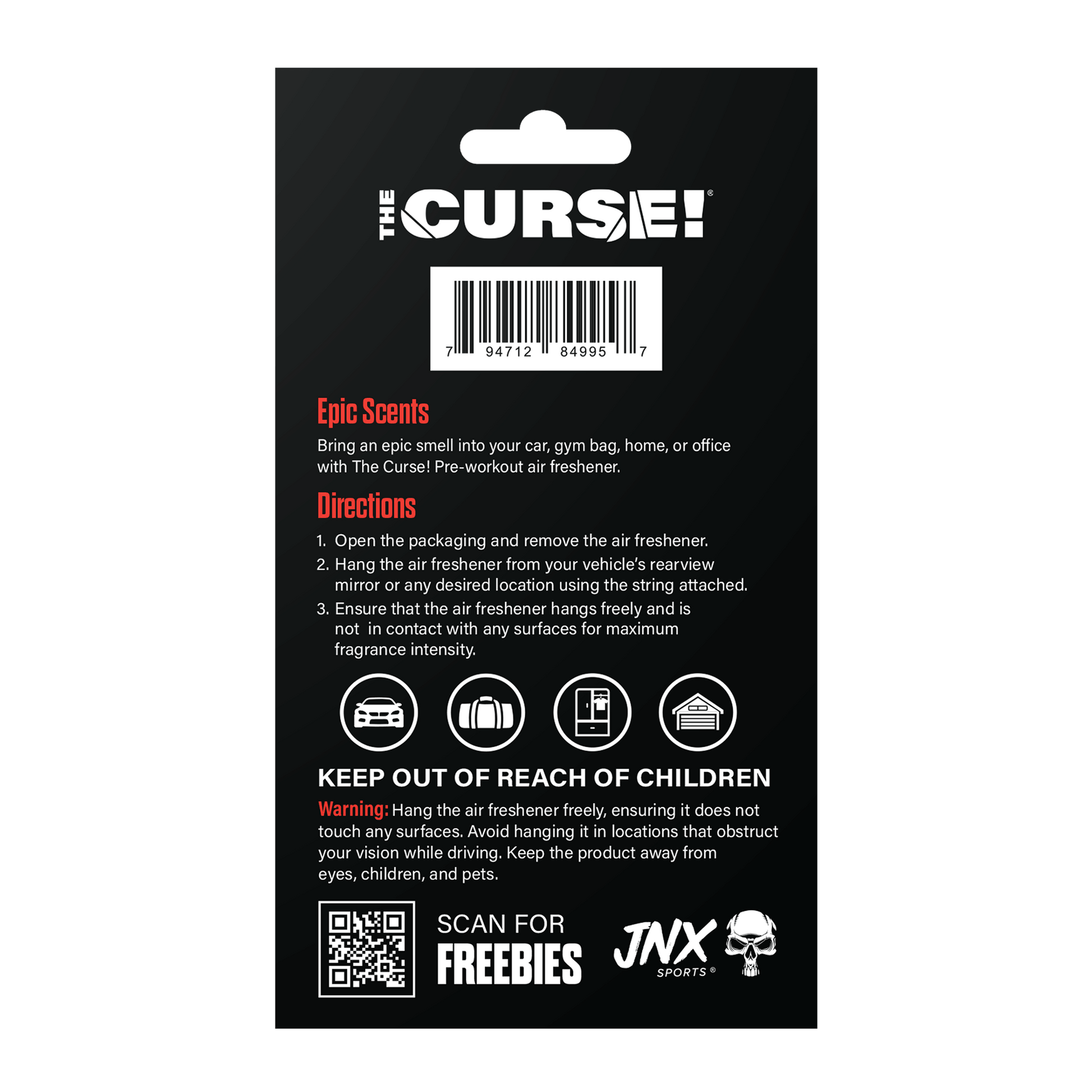 Take the aroma of your favorite JNX Sports® flavors with you wherever you go with these epic JNX Sports® Air Fresheners.